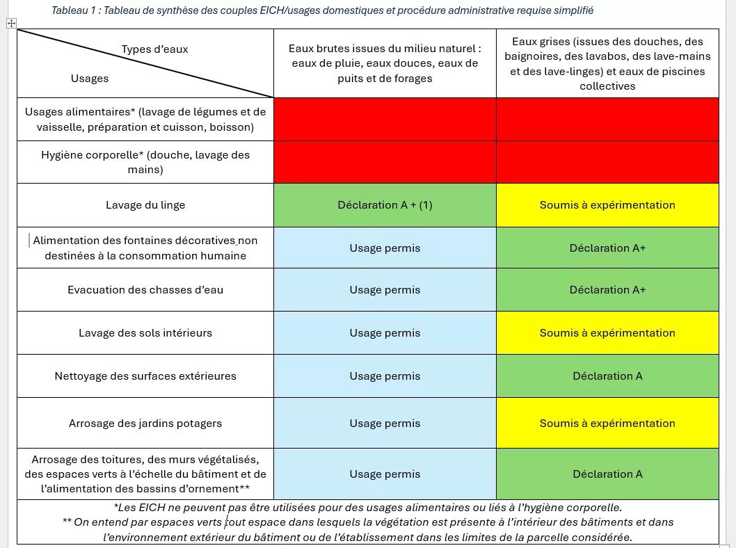 *A noter cependant que l’utilisation des EICH pour des usages domestiques en remplacement de l’eau potable ne doit pas justifier pas une surconsommation d’eau potable.
