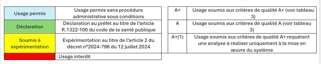 Ces eaux peuvent être utilisées, sous certaines conditions (A), pour :
